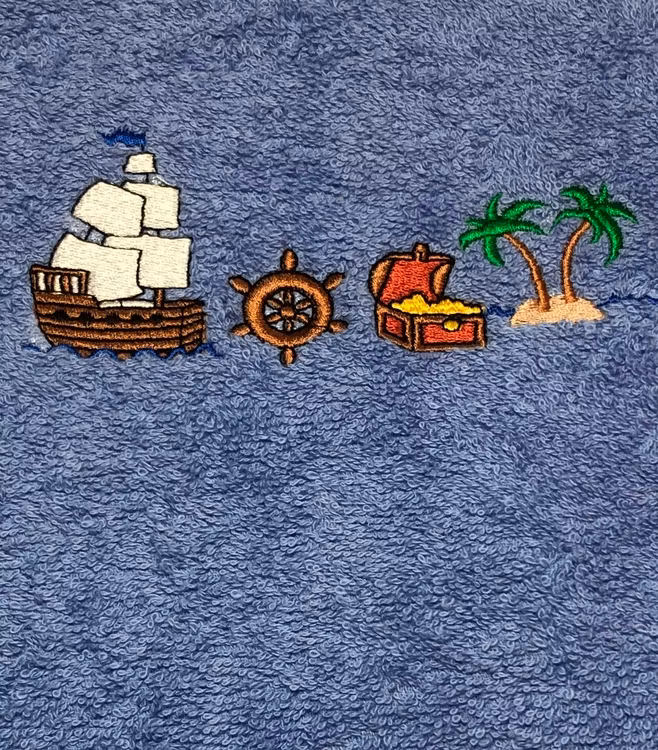 I lager. Badhandduk Pirat-tema 180 kr Lägg i korgen Badhandduk i mjuk ljusblå frotté 70x140 cmPerfekt storlek för gympasäcken, eller hemma efter bad/duschMed namnet broderat blir handduken mer personligTvättas i 60° för enkel och hållbar användning.
