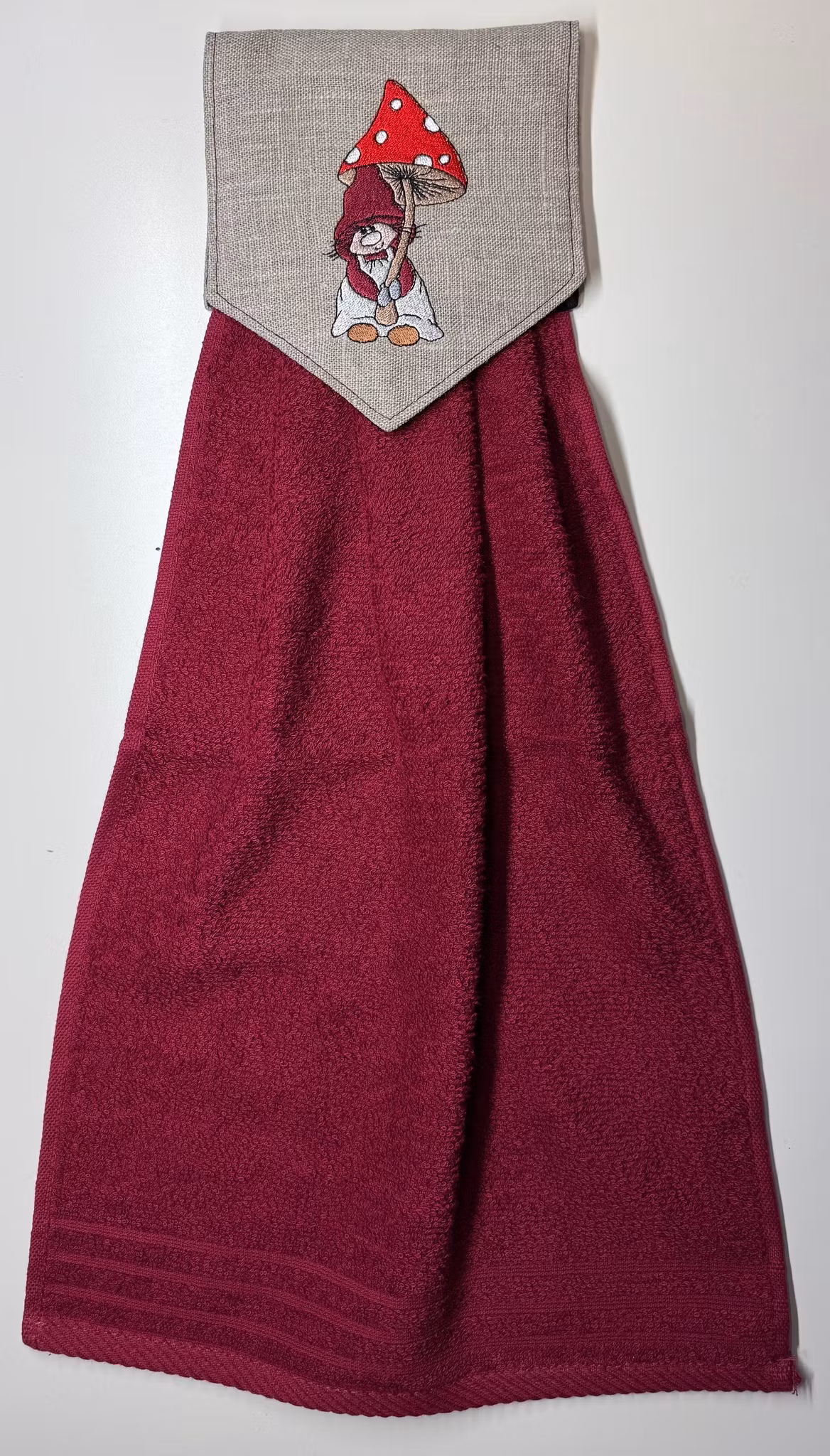 I lager. Spishandduk tomte med svamp 149 kr Lägg i korgen En spishandduk att hänga t.ex. på ugnsluckan.Broderad på linnetyg och lätt vadderad för extra stadga, och knäpps med kardborrband.Frottén är ca 30x40 cm.Handduken kan tvättas i 60°